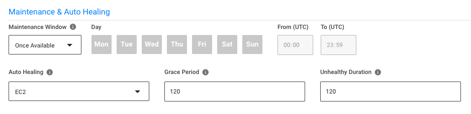 Configure Maintenance and Auto Healing