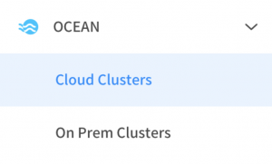 In the side menu of the console, click Ocean/Cloud Clusters.